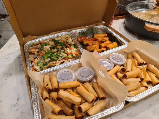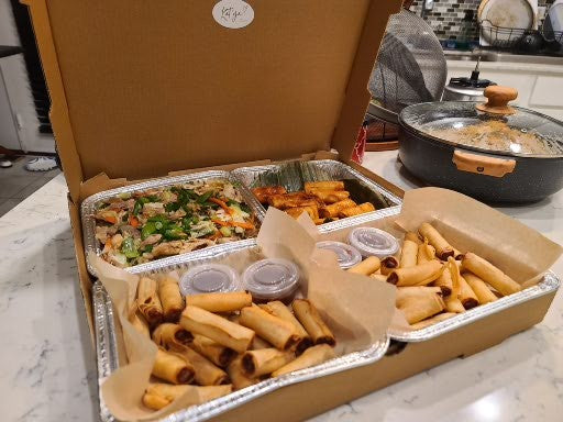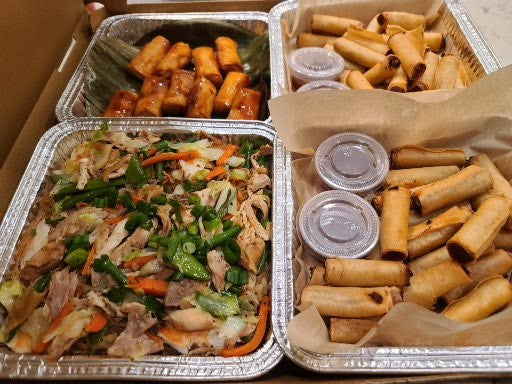 Two lumpia of your choice, each crafted with bold, refined flavor. A generous serving of pancit adds warm, comforting noodles and vegetables for a balanced, satisfying center. To finish, a caramel‑glazed turon—golden, sweet, and luxuriously crisp—brings the combo together in one elevated, indulgent spread.